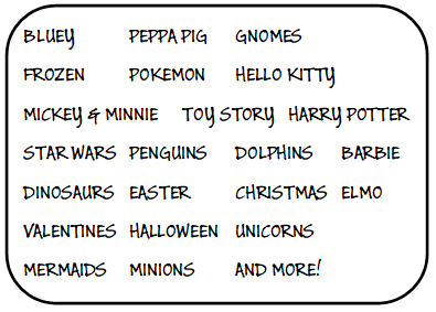 THERE ARE LITERALLY HUNDREDS OF DESIGNS AND COOKIE STAMPS, SO IF YOU LET US KNOW WHAT YOU WANT, WE WILL GET THE JOB DONE! BELOW ARE JUST A HANDFUL OF DESIGNS WE HAVE DONE FOR OUR CUSTOMERS.